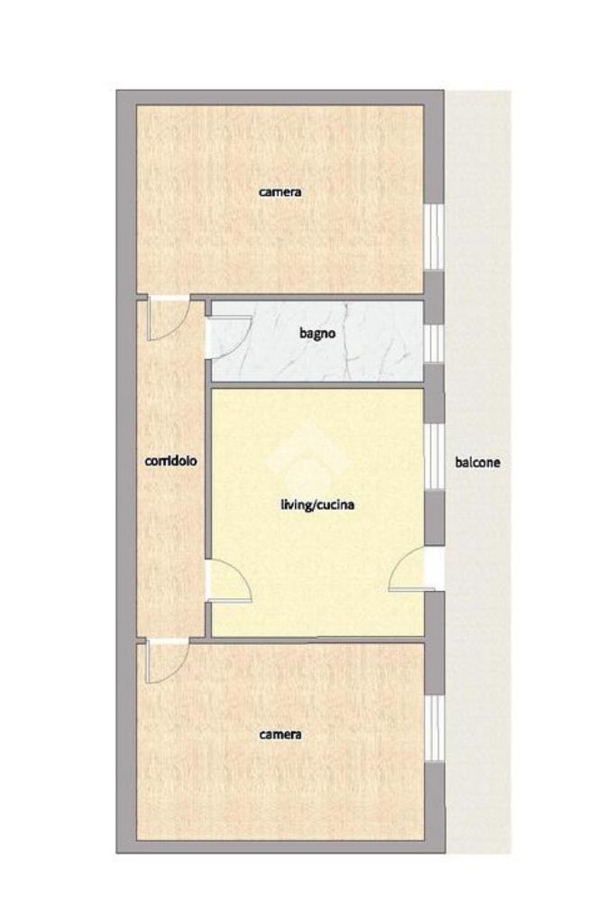 L’immobile si trova al primo piano alto senza ascensore ed è composto da un luminoso salone living, due ampie camere da letto e un bagno con vasca. Gli ambienti sono ben distribuiti e l’appartamento si presenta in buone condizioni
