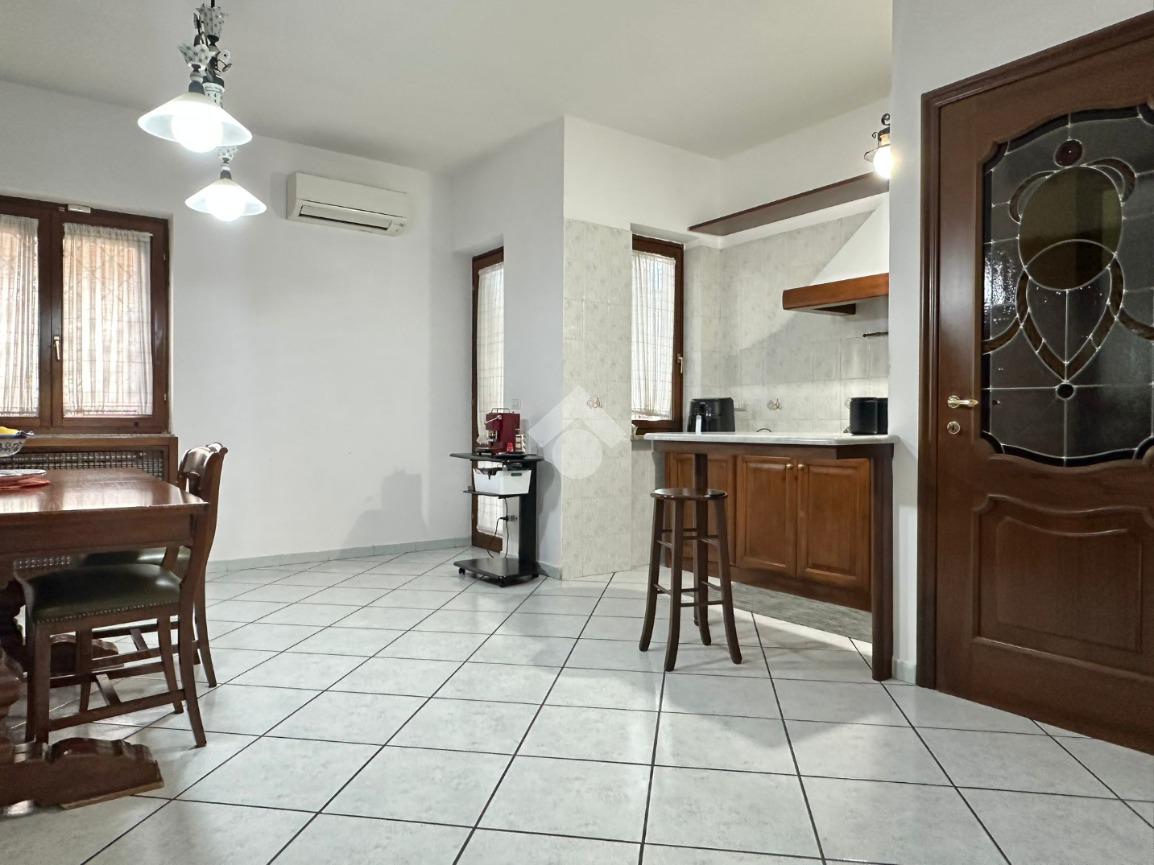 Al piano seminterrato troviamo un comodo box auto di generose dimensioni, capace di ospitare fino a quattro vetture, con accesso diretto all’abitazione: una soluzione pratica e funzionale per la vita piano giorno accoglie con un ampio e raffinato salone a vista, impreziosito da un camino che crea un’atmosfera calda e conviviale, ideale per serate in famiglia. La cucina abitabile, spaziosa e luminosa, si apre su un balcone con accesso diretto al giardino, creando una perfetta continuità tra interno ed esterno. Completa il piano un bagno con doccia.